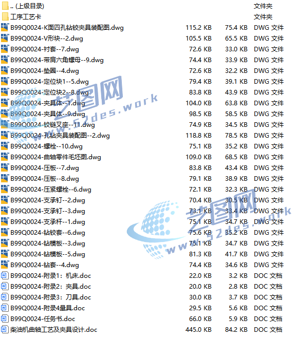文件内容:CAD图纸、工艺卡、工序卡、设计说明书 国标CAD图纸:机械夹具设计装配图 国标CAD图纸:机械夹具设计装配图 国标CAD图纸:零件图 国标CAD图纸:零件图 国标CAD图纸:柴油机曲轴毛坯图 国标CAD图纸:零件图 机械加工工艺卡 机械加工工序卡 柴油机曲轴夹具设计说明书目录
