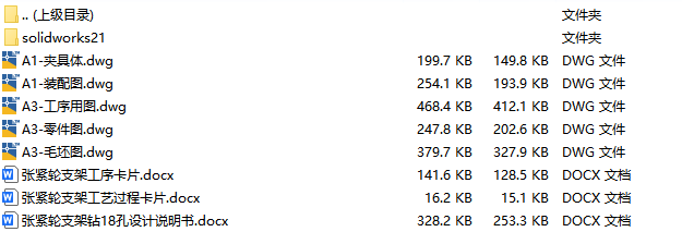 文件内容:solidworks21版三维模型、CAD图纸、工艺卡、工序卡、设计说明书、工序卡用图