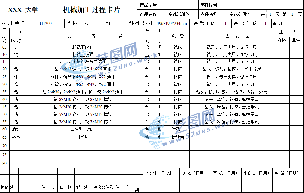 机械加工工序卡