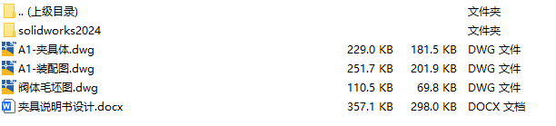 文件内容:solidworks24版三维模型、CAD图纸、夹具设计部分说明书 solidworks24版本模型源文件,可编辑,含参数 阀体夹具solidworks24版三维装配模型 阀体夹具solidworks24版三维装配模型 阀体夹具CAD装配图 阀体CAD夹具体 阀体CAD毛坯图 阀体设计说明书内容