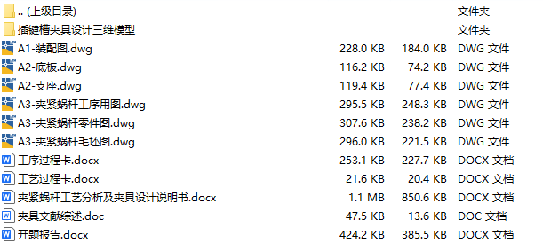 文件内容:solidworks24版三维模型、CAD图纸、工艺卡、工序卡、设计说明书、工序卡用图