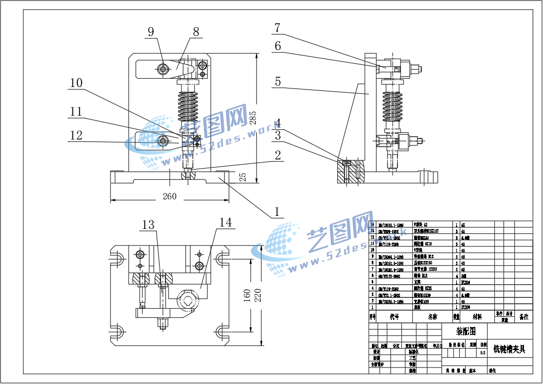 蜗轮蜗杆夹具CAD装配图