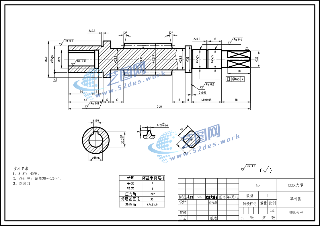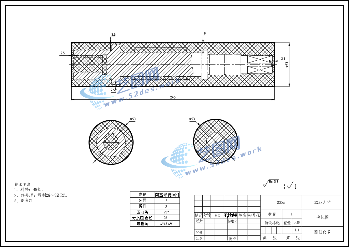 蜗轮蜗杆CAD毛坯图