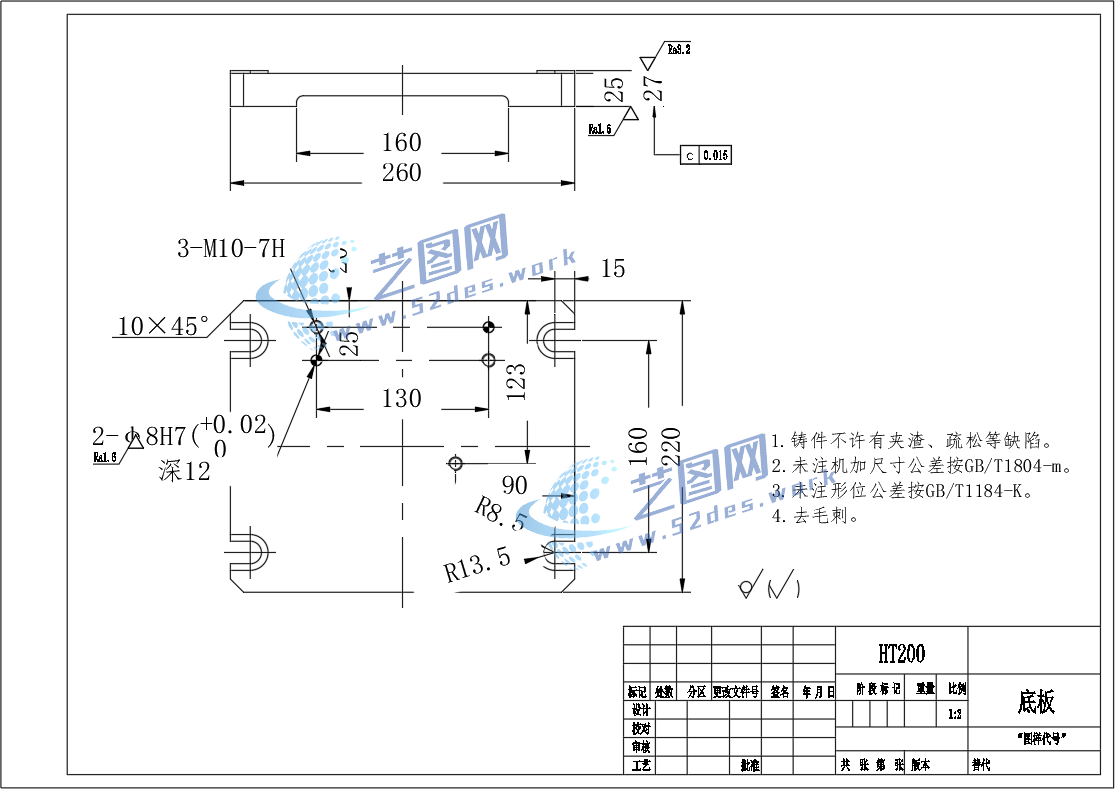 蜗轮蜗杆底板CAD零件图