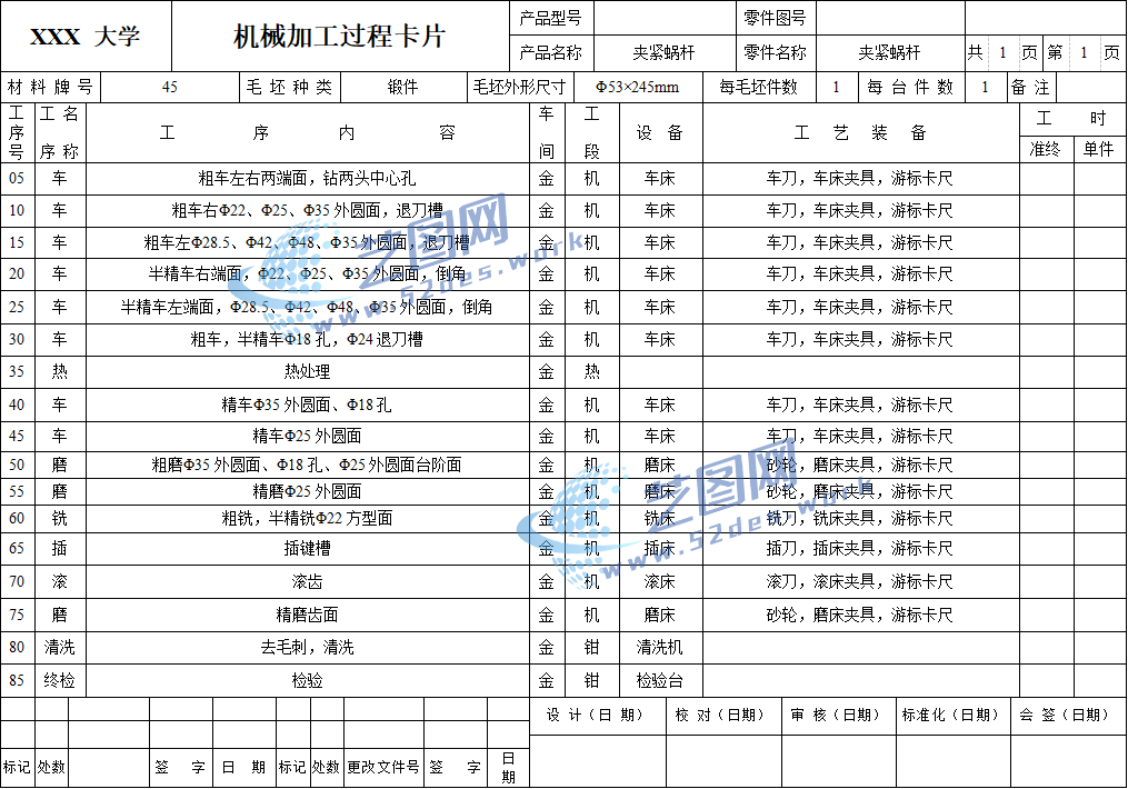 机械加工工序卡