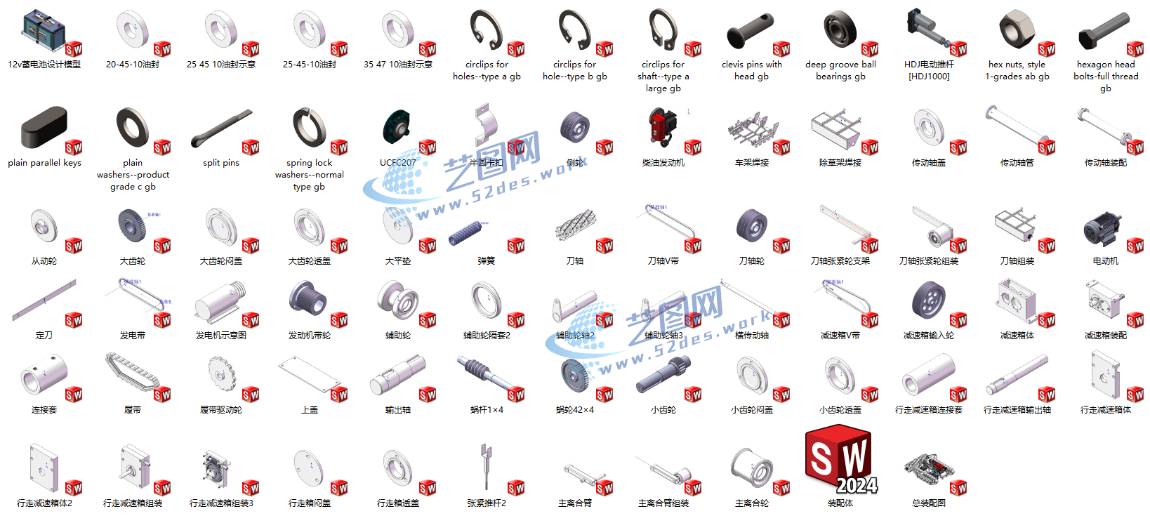 旋转式除草机solidworks24版三维模型源文件,可编辑