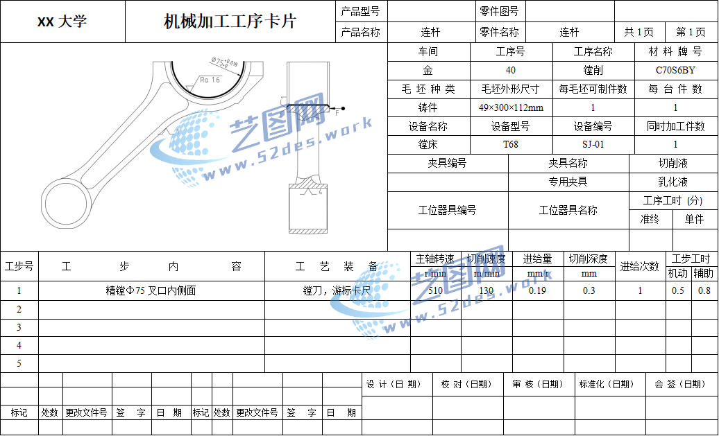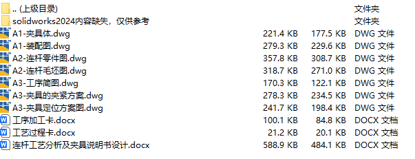文件内容:CAD图纸、工艺卡、工序卡、设计说明书、工序卡用图 连杆夹具CAD装配图 连杆CAD夹具体 连杆CAD零件图 连杆CAD毛坯图 机械加工工艺卡 机械加工工序卡 连杆设计说明书目录 连杆设计说明书内容