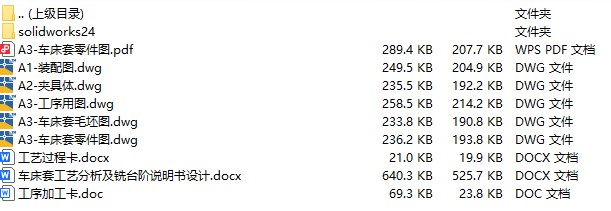 文件内容:solidworks24版三维模型、CAD图纸、工艺卡、工序卡、设计说明书、工序卡用图