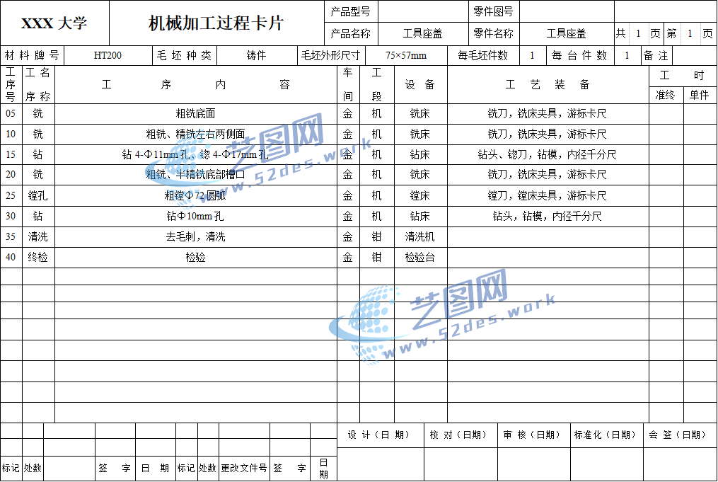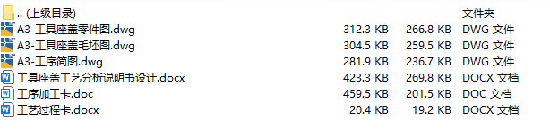 文件内容:CAD图纸、工艺卡、工序卡、设计说明书、工序卡用图工具座盖CAD零件图 工具座盖CAD毛坯图 机械加工工艺卡 机械加工工序卡 工具座盖设计说明书目录 工具座盖设计说明书内容