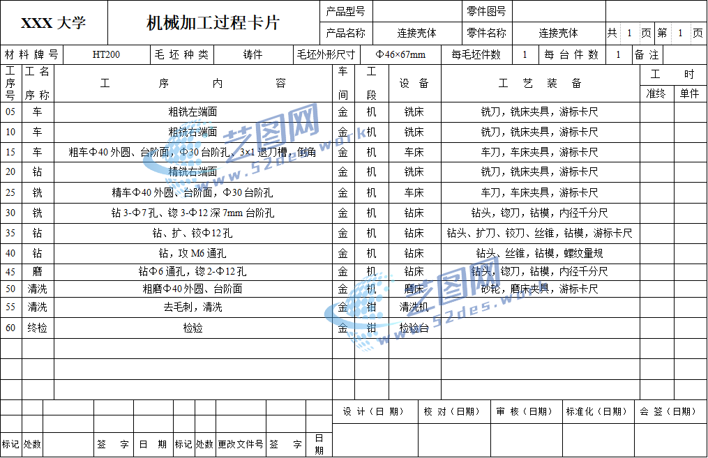 机械加工工序卡