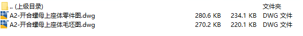 文件内容:CAD图纸 开合螺母上座体CAD零件图 开合螺母上座体CAD毛坯图 声明:本站所有文章,如无特殊说明或标注,均为本站原创发布。任何个人或组织,在未征得本站同意时,禁止复制、盗用、采集、发布本站内容到任何网站、书籍等各类媒体平台。如若本站内容侵犯了原著者的合法权益,可联系我们进行处理。