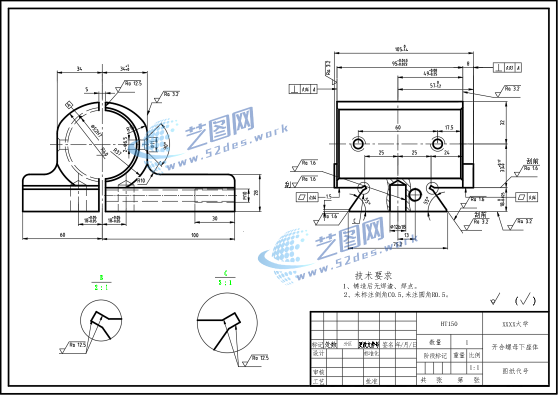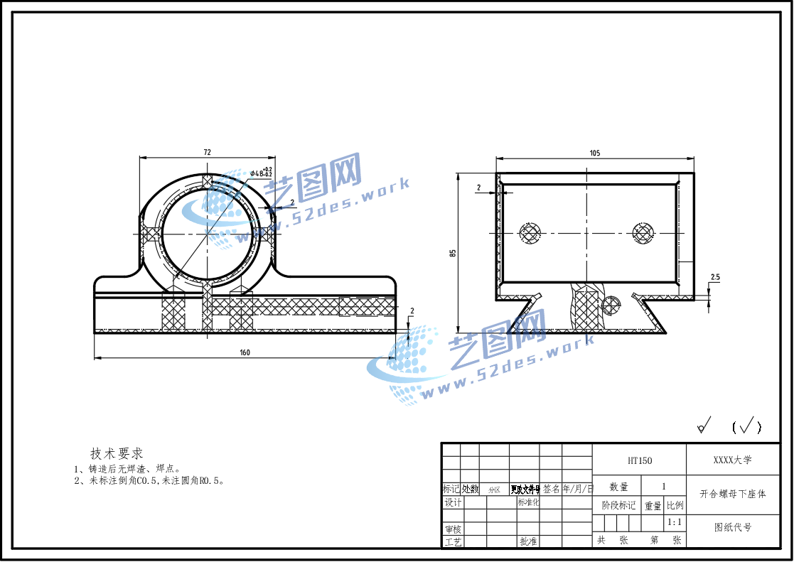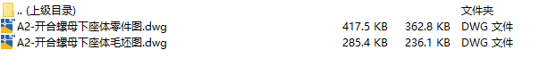 文件内容:CAD图纸 开合螺母下座体CAD零件图 开合螺母下座体CAD毛坯图 声明:本站所有文章,如无特殊说明或标注,均为本站原创发布。任何个人或组织,在未征得本站同意时,禁止复制、盗用、采集、发布本站内容到任何网站、书籍等各类媒体平台。如若本站内容侵犯了原著者的合法权益,可联系我们进行处理。