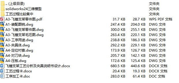 文件内容:solidworks24版三维模型、CAD图纸、工艺卡、工序卡、设计说明书、工序卡用图 solidworks24版本模型源文件,可编辑,含参数 飞锤支架夹具solidworks24版三维装配模型 飞锤支架夹具solidworks24版三维装配模型 飞锤支架夹具CAD装配图 飞锤支架CAD零件图 飞锤支架CAD夹具体 飞锤支架CAD毛坯图 机械加工工艺卡 机械加工工序卡 飞锤支架设计说明书目录 飞锤支架设计说明书内容