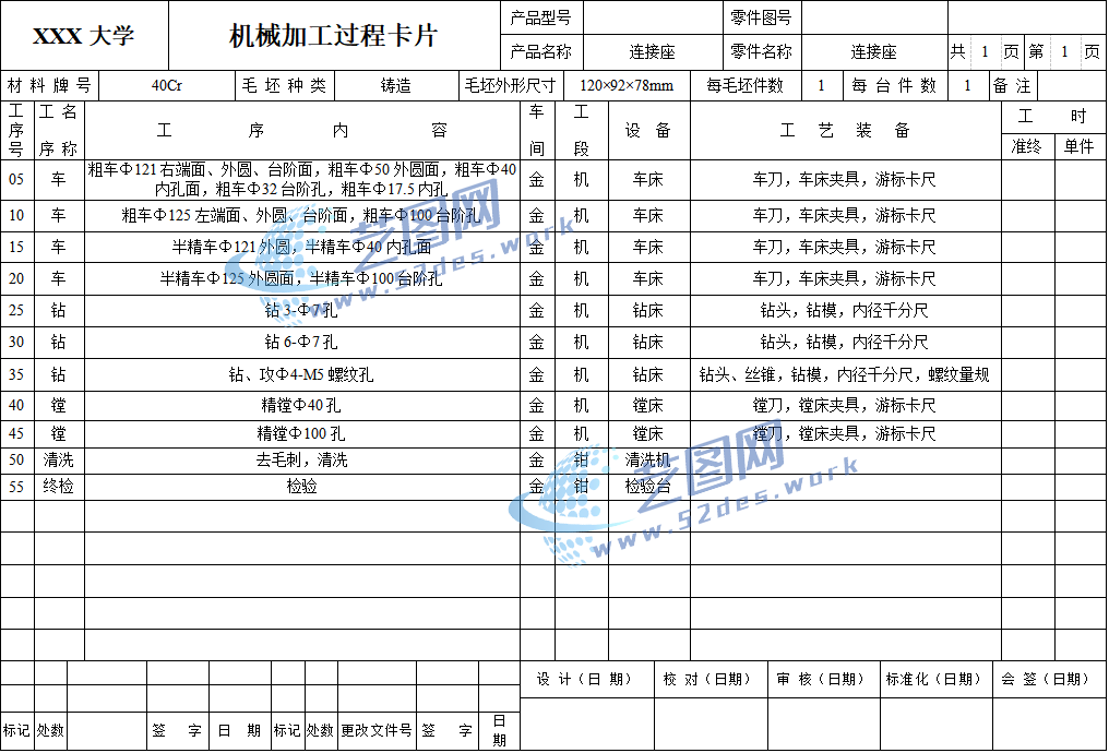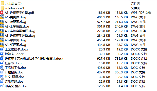 文件内容:solidworks24版三维模型、CAD图纸、工艺卡、工序卡、设计说明书、工序卡用图 solidworks24版本模型源文件,可编辑,含参数 连接座夹具solidworks24版三维装配模型 连接座夹具solidworks24版三维装配模型 连接座夹具CAD装配图 连接座CAD零件图 连接座CAD夹具体 连接座CAD毛坯图 机械加工工艺卡 机械加工工序卡 连接座设计说明书目录 连接座设计说明书内容