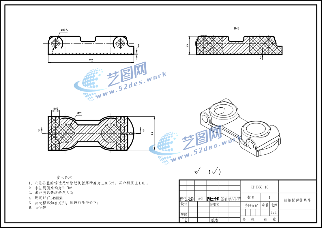 前钢板弹簧吊耳CAD零件图