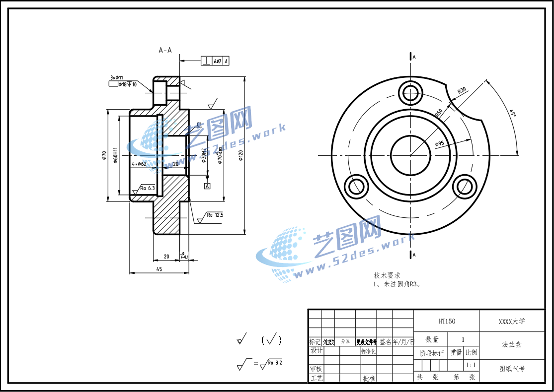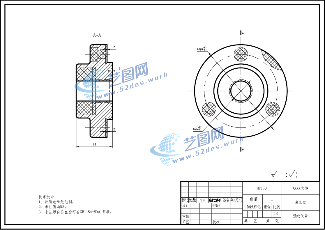 缺口法兰盘CAD毛坯图