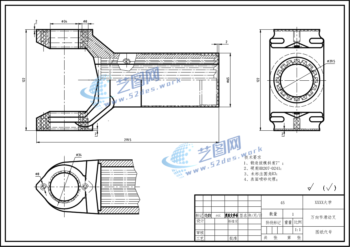 万向节滑动叉CAD毛坯图