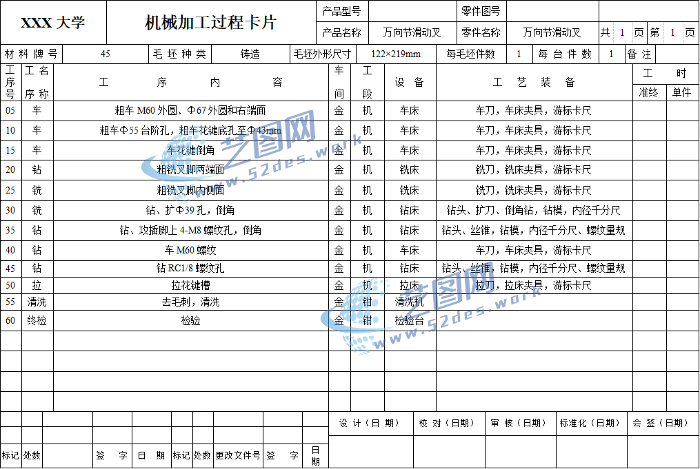 机械加工工序卡