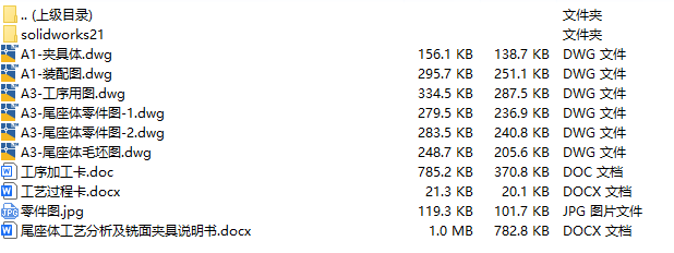 文件内容:solidworks24版三维模型、CAD图纸、工艺卡、工序卡、设计说明书、工序卡用图