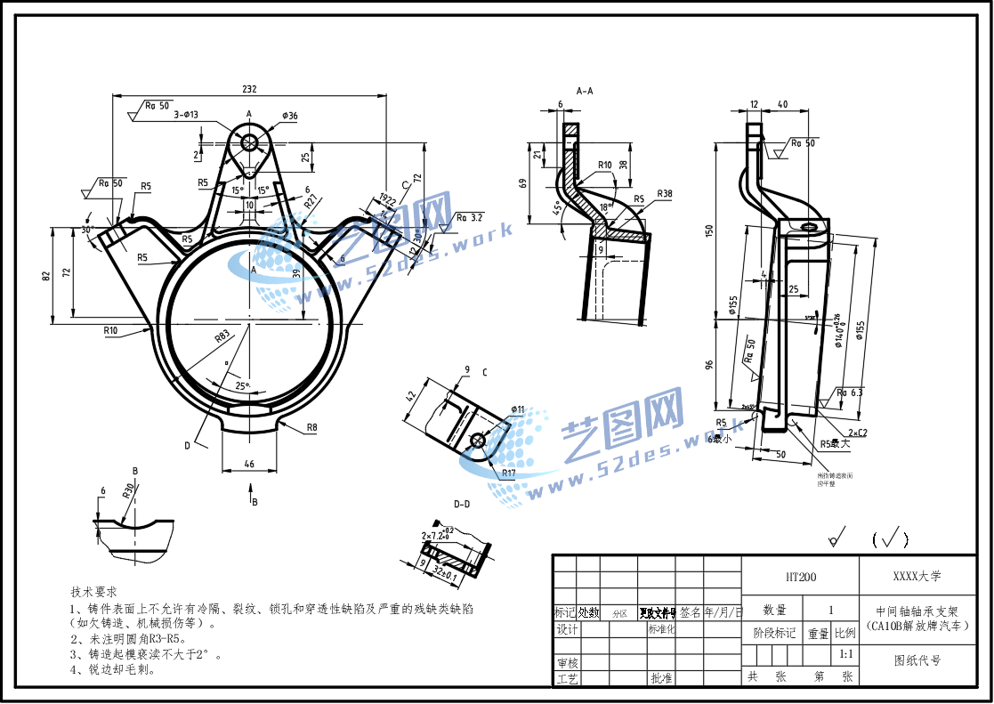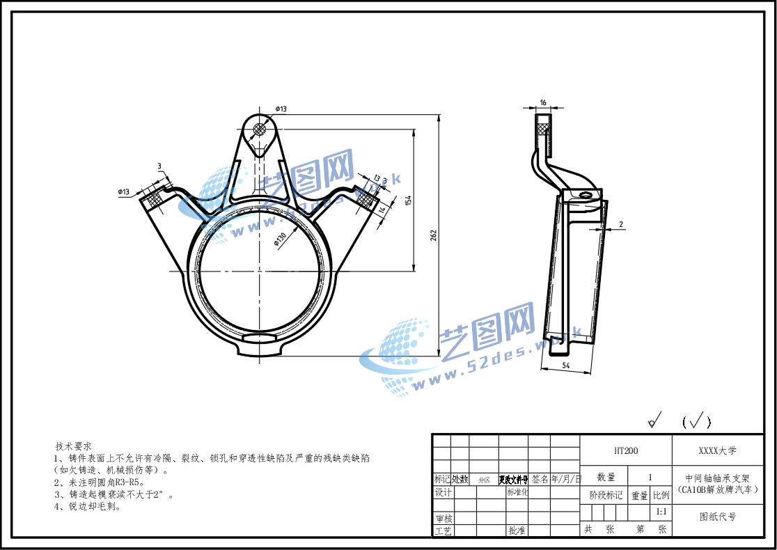 中间轴承支架CAD毛坯图