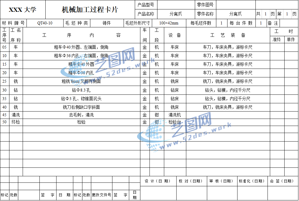 机械加工工序卡