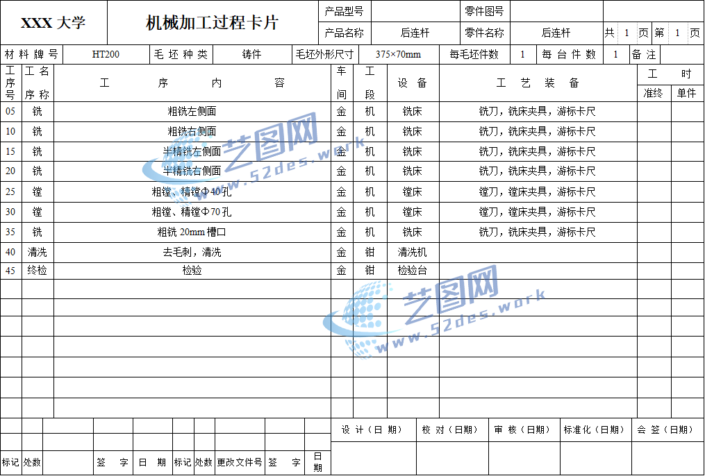 机械加工工序卡