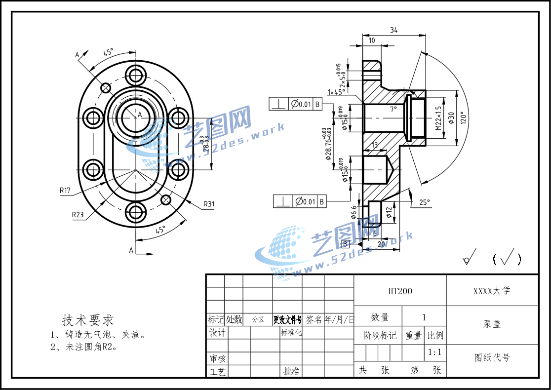 泵盖CAD零件图