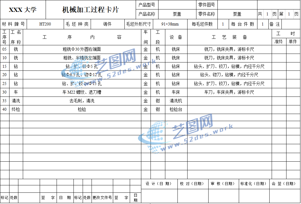 机械加工工序卡