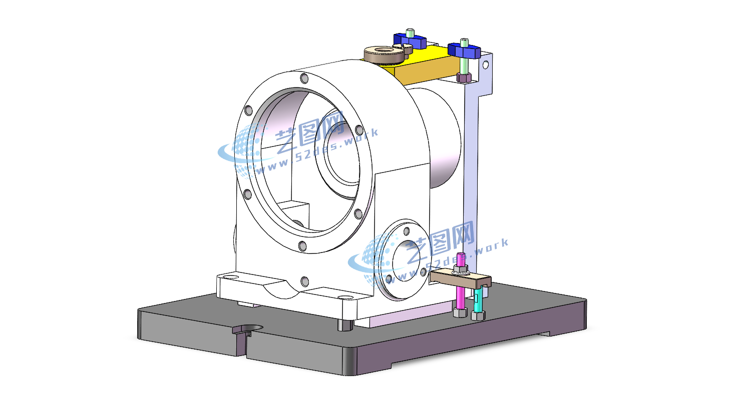 蜗轮减速器箱体夹具solidworks24版三维装配模型