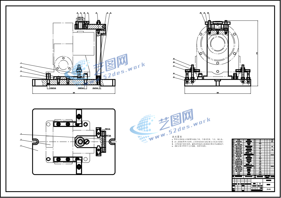 蜗轮减速器箱体夹具CAD装配图
