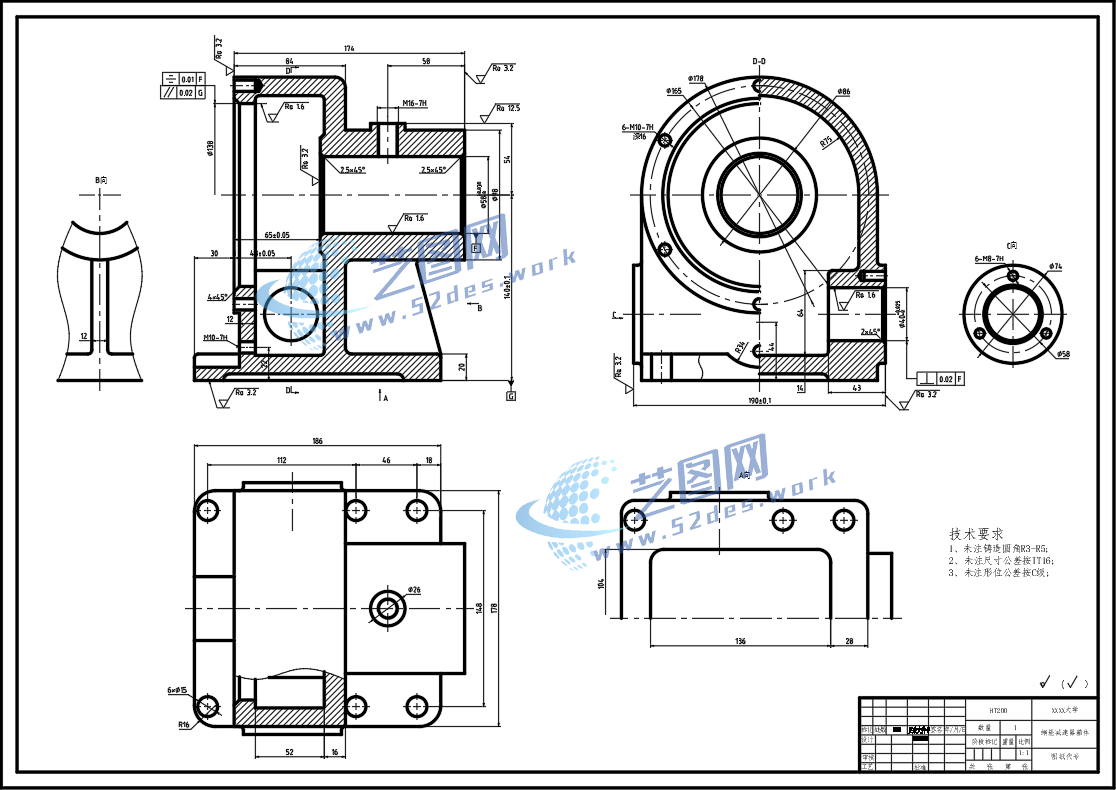 蜗轮减速器箱体CAD零件图