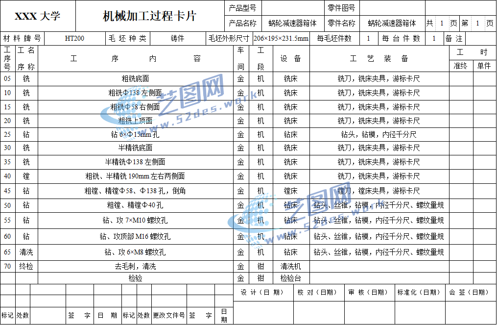 机械加工工序卡