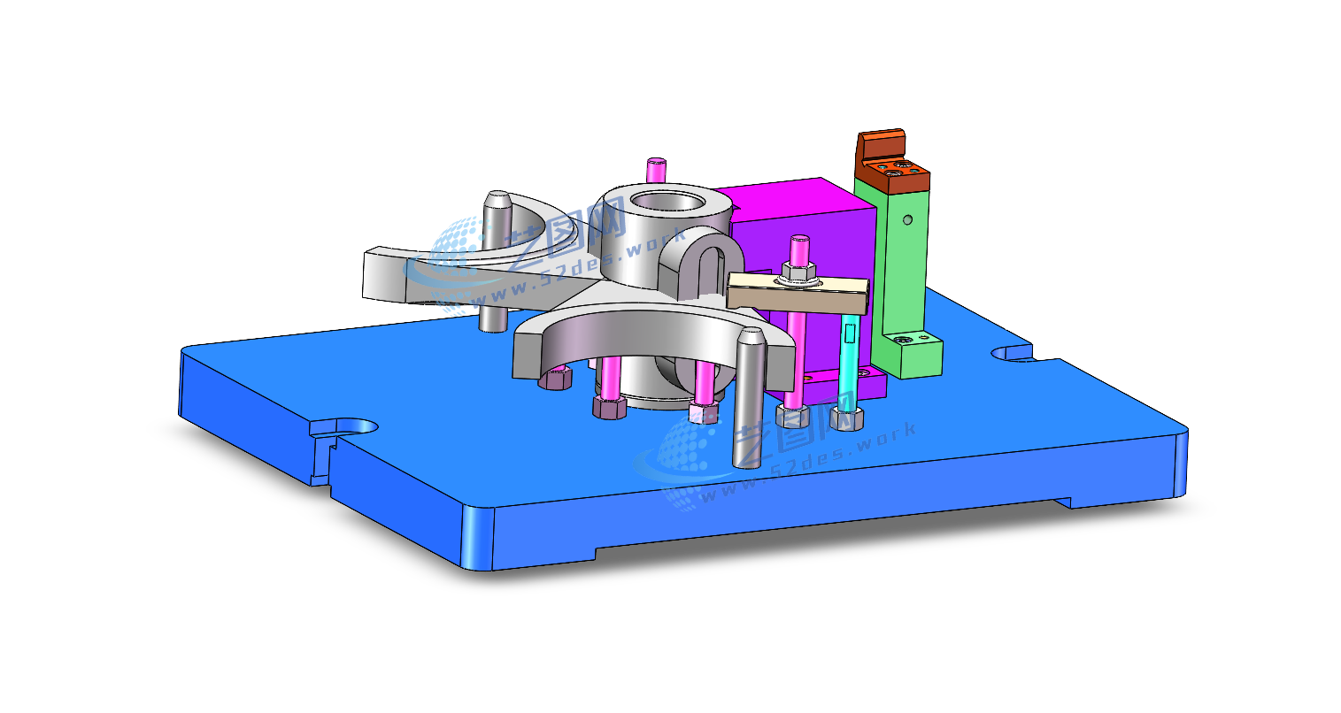 拖拉机拨叉夹具solidworks24版三维装配模型