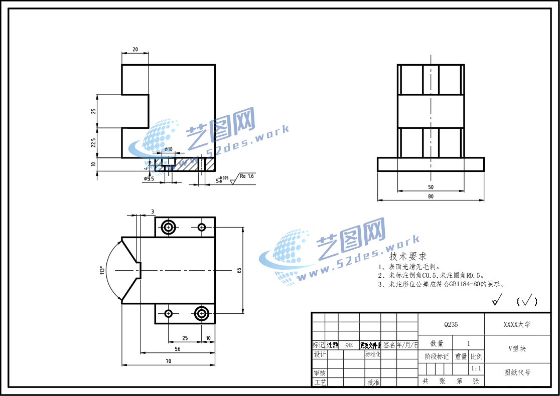拖拉机拨叉CAD V型块