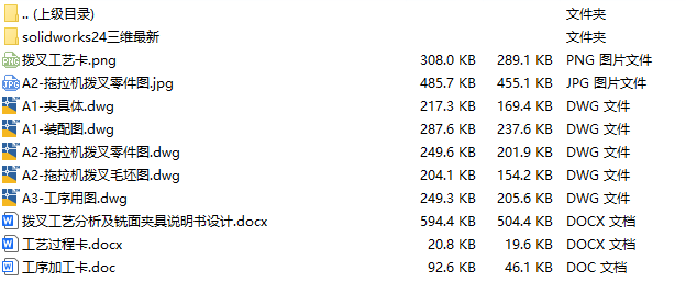 文件内容:solidworks24版三维模型、CAD图纸、工艺卡、工序卡、设计说明书、工序卡用图