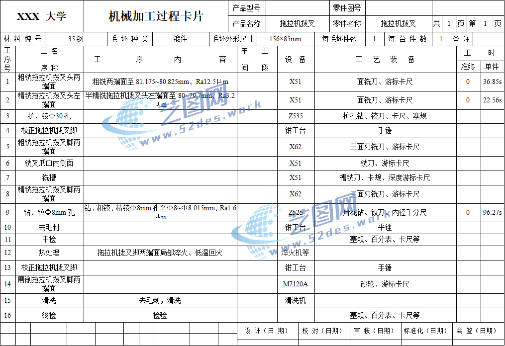 机械加工工序卡