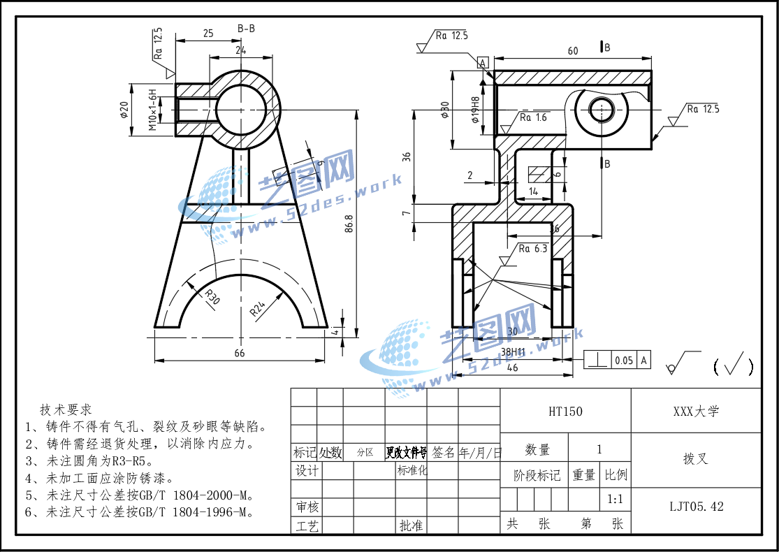 新拨叉CAD零件图