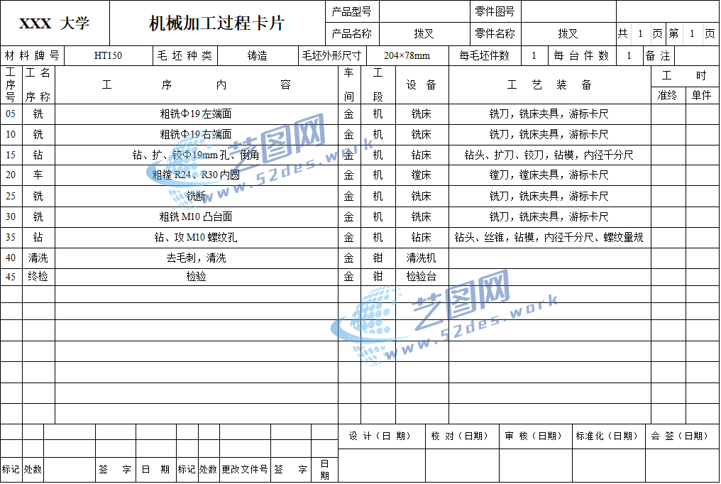 机械加工工序卡