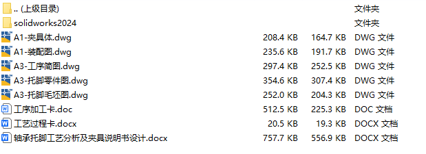 文件内容:solidworks24版三维模型、CAD图纸、工艺卡、工序卡、设计说明书、工序卡用图