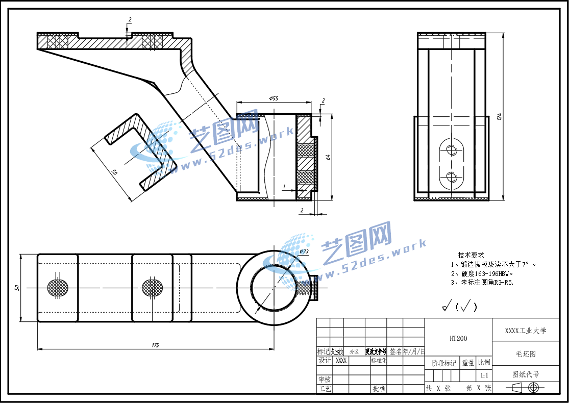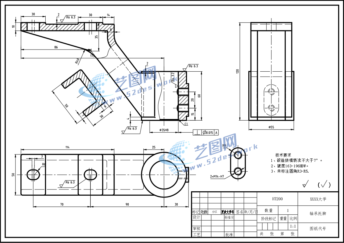 轴承托脚CAD毛坯图