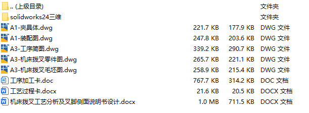 文件内容:solidworks24版三维模型、CAD图纸、工艺卡、工序卡、设计说明书、工序卡用图
