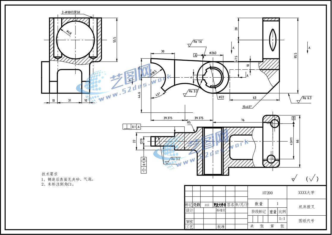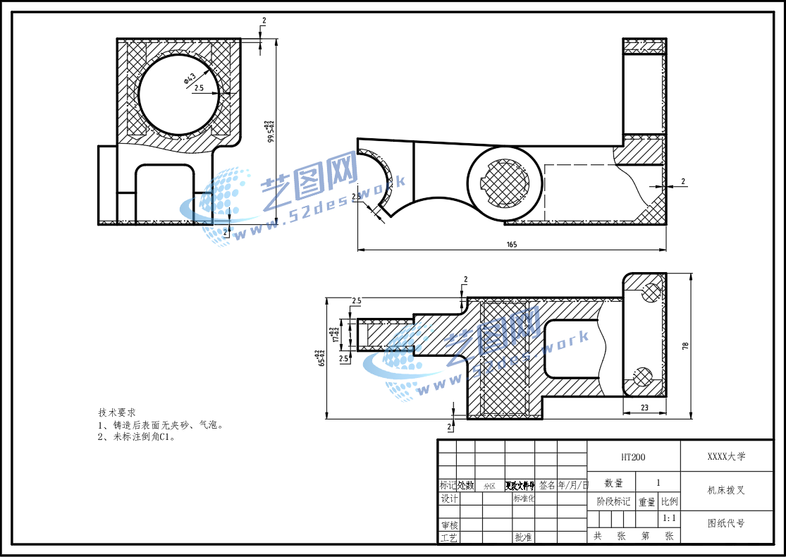 机床拨叉CAD零件图