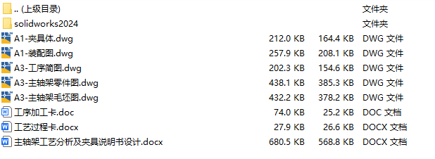 文件内容:solidworks24版三维模型、CAD图纸、工艺卡、工序卡、设计说明书、工序卡用图