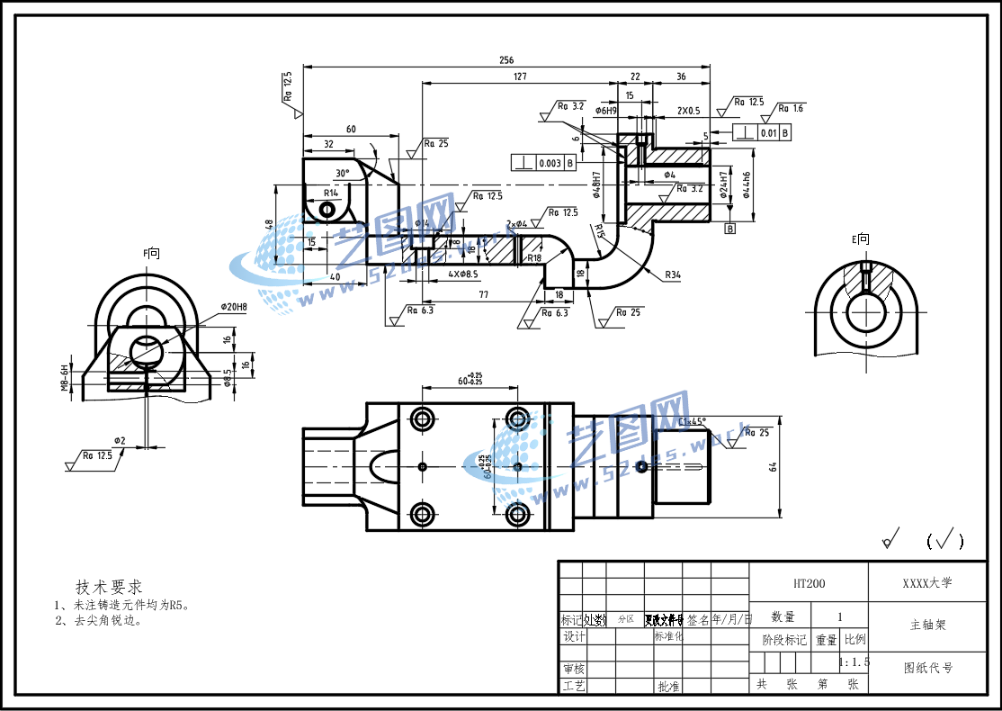 主轴架CAD零件图