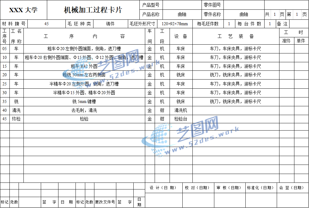 机械加工工序卡