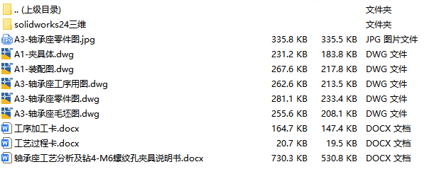 文件内容:solidworks24版三维模型、CAD图纸、工艺卡、工序卡、设计说明书、工序卡用图 solidworks24版本模型源文件,可编辑,含参数 轴承座夹具solidworks24版三维装配模型 轴承座夹具solidworks24版三维装配模型 轴承座夹具CAD装配图 轴承座CAD零件图 轴承座CAD夹具体 轴承座CAD毛坯图 机械加工工艺卡 机械加工工序卡 轴承座设计说明书目录 轴承座设计说明书内容