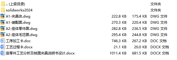 文件内容:solidworks24版三维模型、CAD图纸、工艺卡、工序卡、设计说明书、工序卡用图 solidworks24版本模型源文件,可编辑,含参数 座体夹具solidworks24版三维装配模型 座体夹具solidworks24版三维装配模型 座体夹具CAD装配图 座体CAD零件图 座体CAD夹具体 座体CAD毛坯图 机械加工工艺卡 机械加工工序卡 座体设计说明书目录 座体设计说明书内容