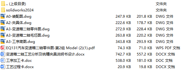 文件内容:solidworks24版三维模型、CAD图纸、工艺卡、工序卡、设计说明书、工序卡用图