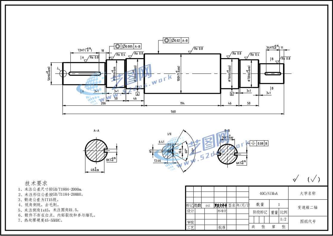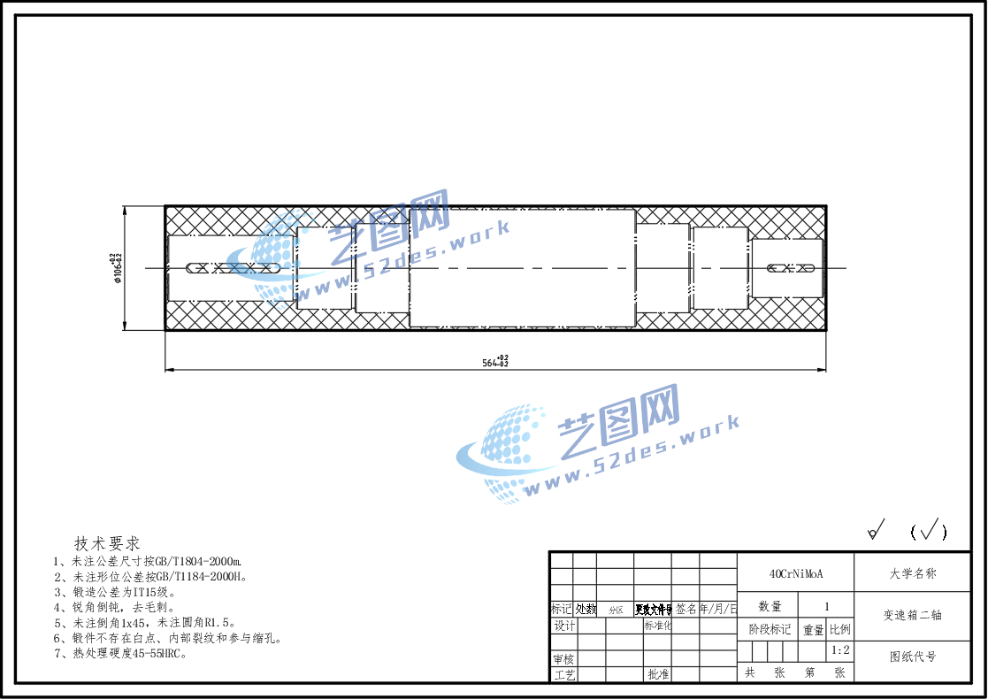 变速箱二轴CAD零件图