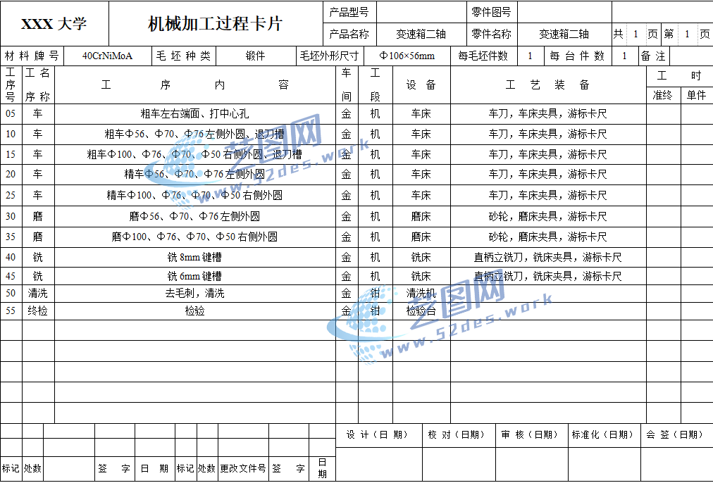 机械加工工序卡